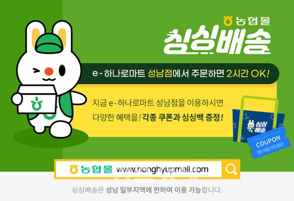 - e-하나로마트 싱싱배송: 인근 마트에서 직접 배달해 주는 서비스를 조력자 역할을 수행하며 지능적으로 메뉴를 가이드하며 명확한 당일 배송을 지원합니다.