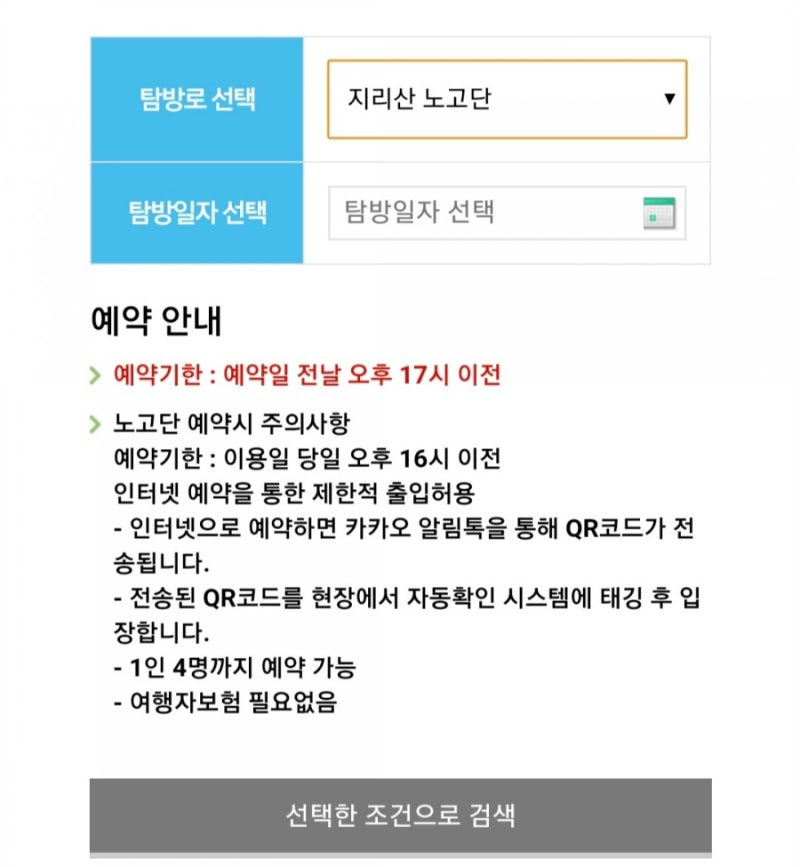 - 탐방로 선택 : '지리산 노고단'을 선택합니다.