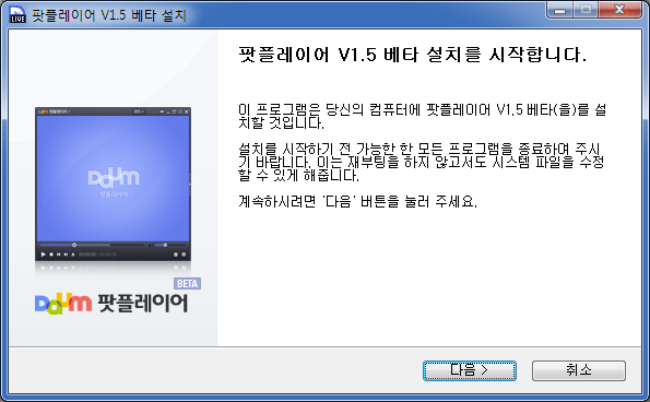 내려받은 실행 파일을 열면 안내에 따라 다음팟플레이어 다운로드 이후의 본격적인 설치 프로세스가 시작됩니다.