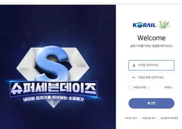 가장 안전하고 확실한 복지 혜택을 누리기 위해 사내망 혹은 지정된 공식 URL을 통해 코레일 복지후생관에 접속하시기 바랍니다.