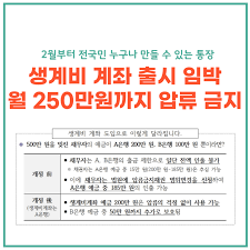생계비계좌는 법적 보호를 위해 본인이 수급하는 지정된 지원금 외에 일반 입금이 제한된다는 점을 명확히 인지하시기 바랍니다.